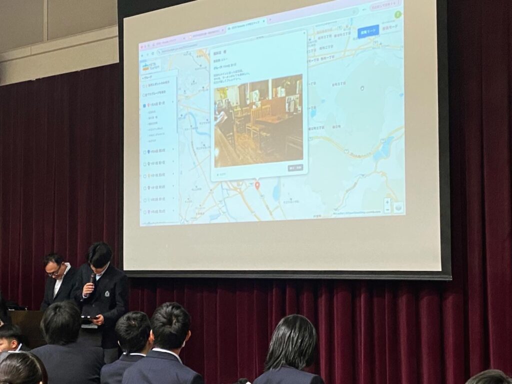 昨年度に続き、坂出第一高校の「総合探究」でのデジタル活用による地域探究としてメタ観光 の授業。今年は1年生を対象に100人以上で実施しました。